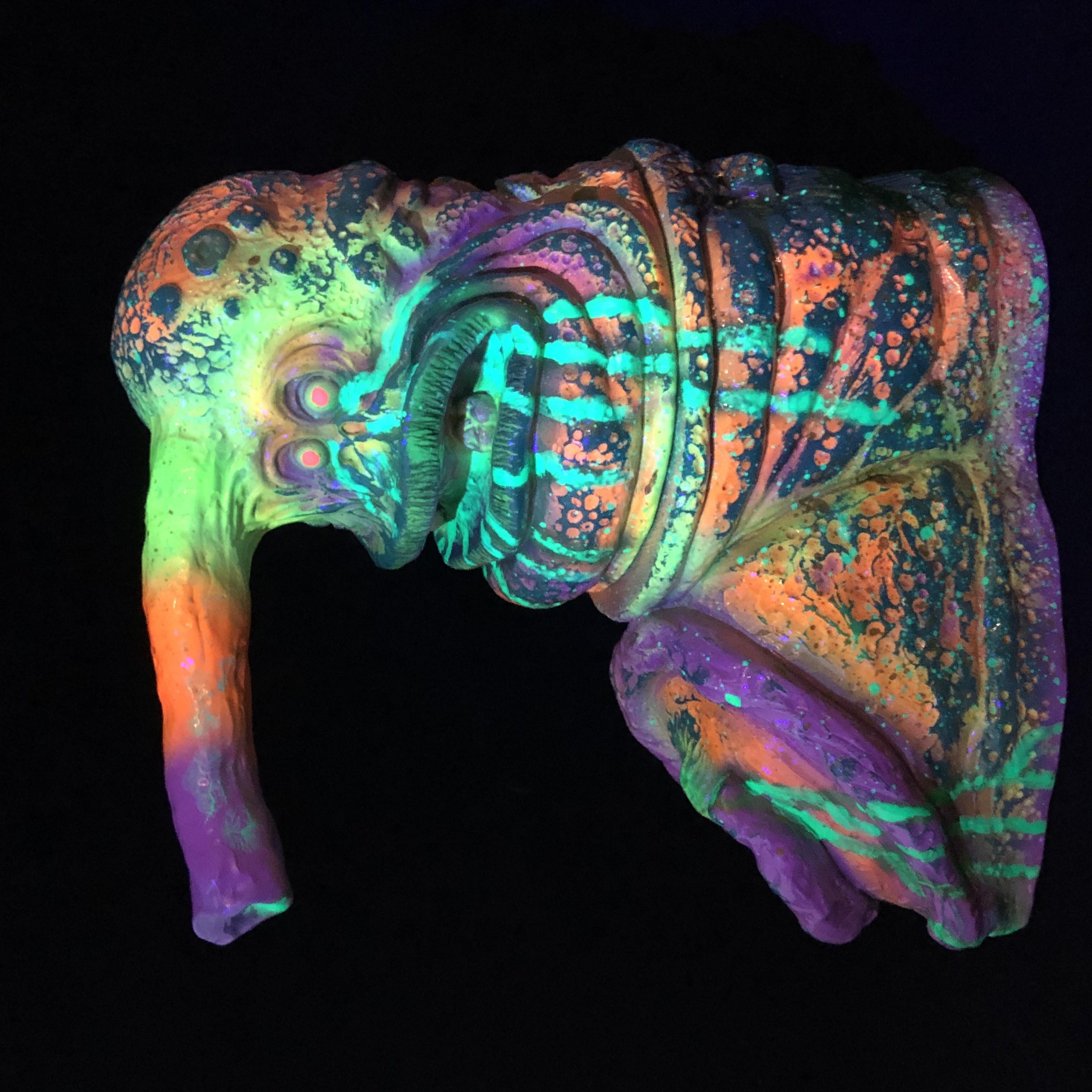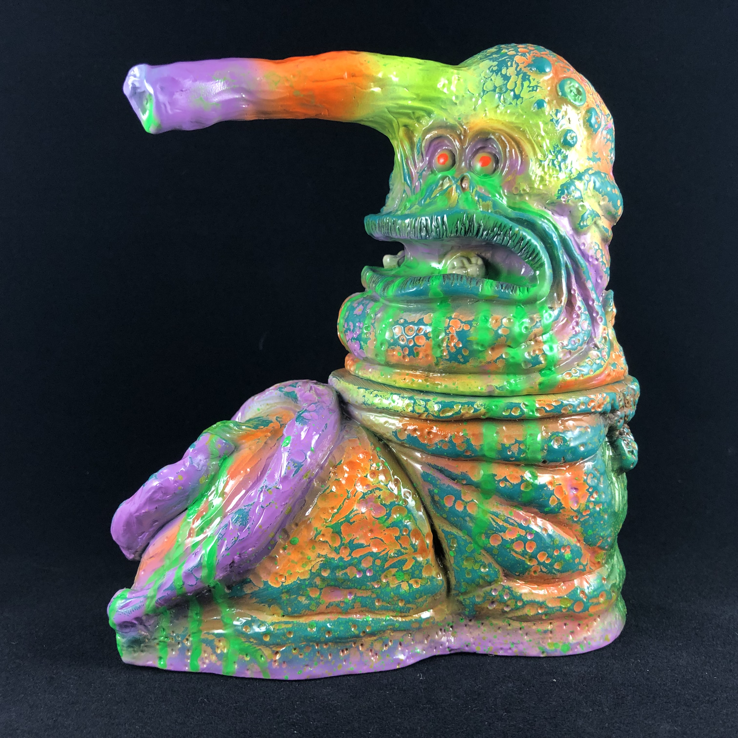 Stomak figure by Natethemilkman. Painted with Monster Kolor UV reactive and metallic paint. An awesome piece for a collector with a blacklight display!